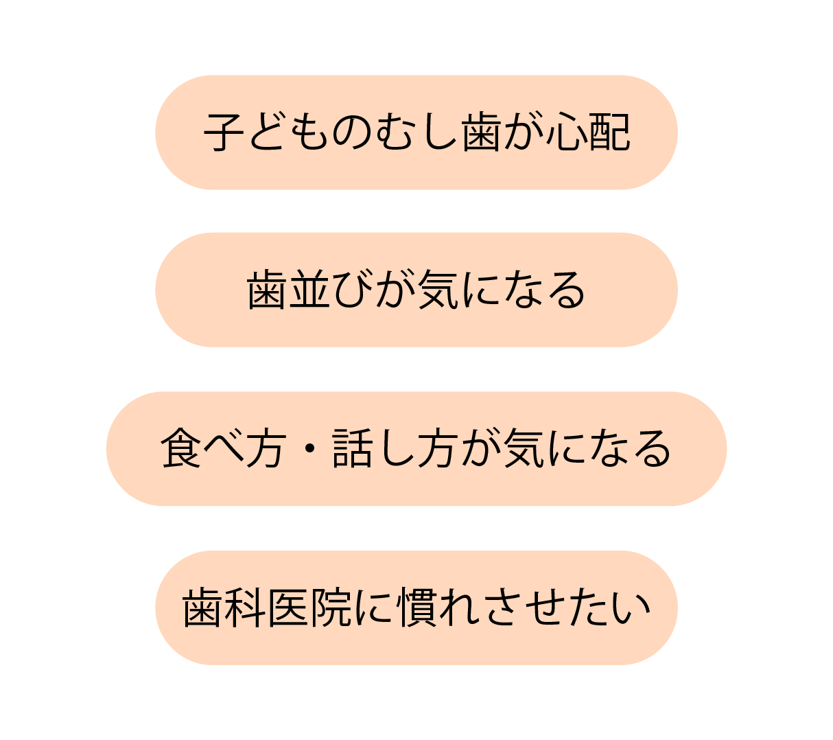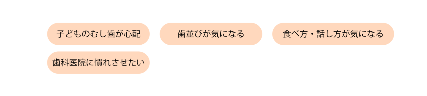 また、「食べるのが遅い」「発音が気になる」「お口がいつも開いている」などの様子が見られる場合、お口の使い方や発達が関係していることがあります。これらは口腔機能発達不全症と関連することもあります。