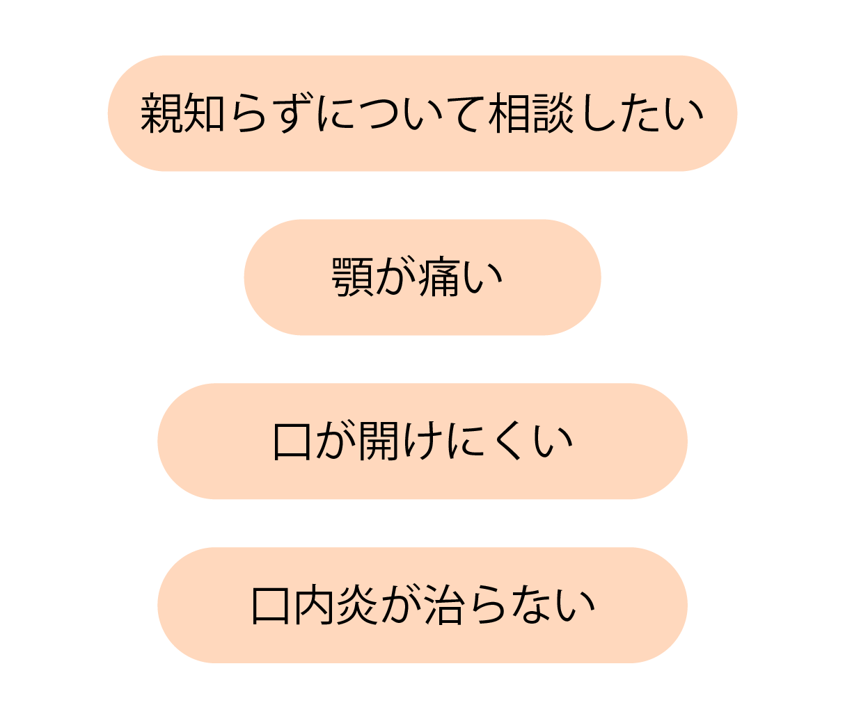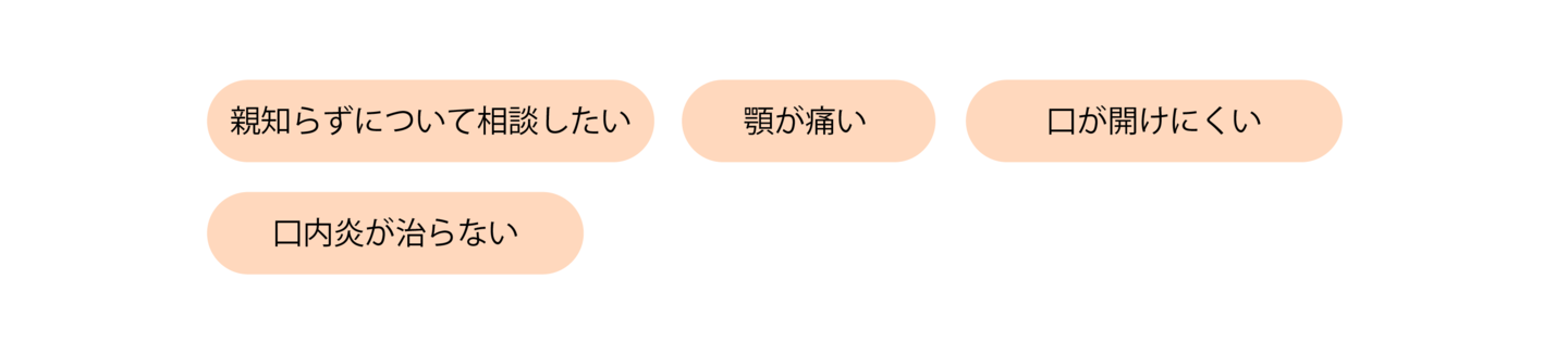 口腔外科では、歯や歯ぐきだけでなく、顎・舌・口腔粘膜など、お口まわりのさまざまな症状を診療します。親知らずの抜歯や、顎の痛み、口が開きにくいといった症状もご相談ください。